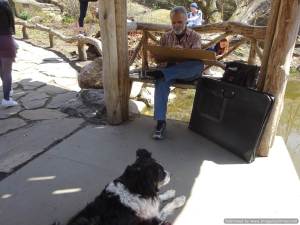 Sadly, Alfie is not as energetic as last time he was here. The diagnosis of hip dysplasia and arthritis has probably made me more wary of over-exercising him. I constantly watch him, concerned that when he is panting he might be in pain. I have ordered all sorts of supplements to help him and have to use a pestle and mortar to grind all the tablets. We still enjoy Central Park, Riverside Park and Morningside Park but now I take the subway or bus to get there. He has also had a couple of tummy bugs that have necessitated copious amounts of rice. Apart from that, he is delighted to be back with his girlfriend, Ellie, Debbie’s ‘Seeing Eye’ German Shepherd. Recently, I have caught them cuddling up together – so sweet!