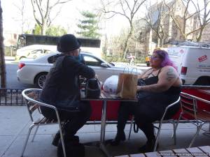 I have been visiting the Hungarian Pastry shop (the walnut baklava is superb) but not quite as much as last time. I took a picture of a fascinating couple sat near me.