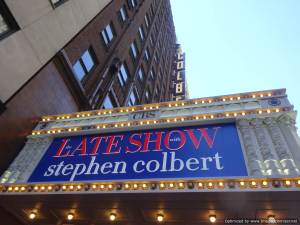 Stephen Colbert has risen to the top of the late-night presenters because of his no-holds-barred condemnation of the f.ckwit. Debbie and I look forward to our 11.30 p.m. date with him. I applied for tickets (like gold-dust) and managed to secure 2 last-minute (literally) ones to the show that had Jim Parsons (Sheldon) from The Big Bang Theory and a load of cute puppies. He is as funny live as he is on TBBT – just a witty lovely guy.