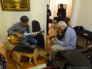 Along with Debbie, there were three other visually impaired people: Tom, Frank and Ramone. People that we met at the jazz upstairs at Ryan’s Daughter also came – Gene Burtoncini along with Roni and Pedro. I had met Pedro in the park (he had admired Alfie) and we got chatting like old friends. He is returning to Santiago, in Chile, in September. He told me about his teacher, Gene: a New York legend, an absolutely amazing guitar player and inspiration for young musicians. https://en.wikipedia.org/wiki/Gene_Bertoncini