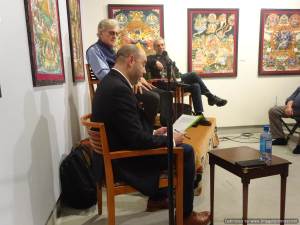 Having organised with Ganden Thurman (Bob’s son) to teach at Tibet House, I decided to go to the private view of the exhibition “Glimpses of Mustang” by Jaroslav Poncar that was held 2 days before my talk. The photos of this beautiful country were really fascinating and there was a man who was born in Mustang there to point out interesting elements in the photographs such as the tracks running up the mountains that you would not normally see. Mustang is a tiny Tibetan region in the Himalayas, hidden behind the high peaks of Annapurna and Dhaulagiri. Before, 2008, it was a kingdom within the Kingdom of Nepal. Since 1992, its borders have been open to a controlled number of foreign visitors. It was a lovely evening and they had some great nibbles and drinks.