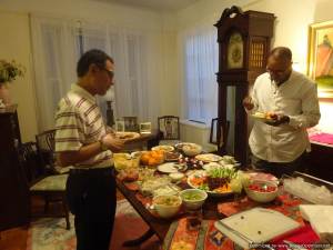 Debbie, Tom and Sandra, along with Tiffany, David and Roni, all came to Tibet House. They also attended the party that I organised for Debbie. I made some of my signature dishes – caramelised onion hummus, lemon and coriander hummus, tsatsiki and potato and onion salad. We ordered all of the ingredients for that and the rest of the food from “Fresh Direct” – a great delivery service that Debbie uses.