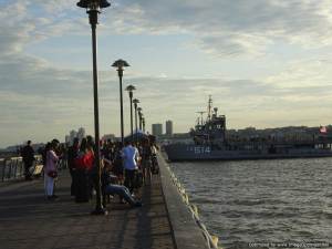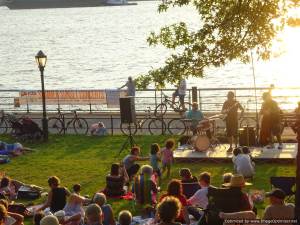 It is flanked by a cycle/pedestrian track most of the way down and in the summer the City Parks organise many “Summer on the Hudson”free events. Tiffany (who I met in Riverside Park, lives with David), Debby and I took our 3 dogs to one of the outside concerts.