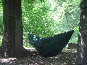 Arriving at the North West corner of Central Park after walking across Morningside Park on a beautiful sunny day, we came across someone who was reading in a hammoc they had strung between 2 trees – they looked very content.