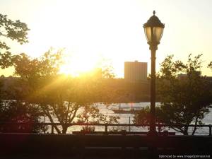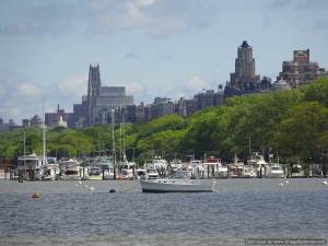 The Hudson river runs down the West side of Manhattan past Riverside Park.