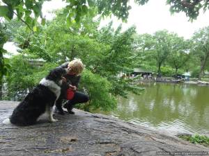 Central Park has many water fountains – I came across a bird having a bath in the low-level part of the fountain which you can fill for the dogs to drink from!