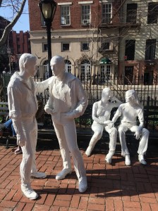On the Sunday there was a Titanic exhibition at Straus Park – a tiny park between Broadway and the end of West End Avenue. This was to commemorate 103 years to the day since the sinking of the ship. The park is named after Isidor and Ida Straus, the children of Lazarus Straus who owned Macy’s. They were travelling back from Europe and were last seen holding hands on deck. The inscription in front of the statue reads “Lovely and Pleasant Were They in Their Lives and In Their Deaths They Were Not Divided”.