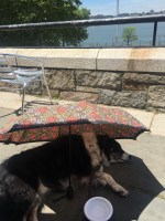 Another place I always enjoy eating at is the Ellington in the Park just near us in Riverside Park where my friend Dom and I enjoyed a beef burger while our dogs rested in the shade – Alfie’s being an umbrella!We also continue to visit the Hungarian Pastry Shop where Alf enjoys the pastry from the delicious baklava that I order there.