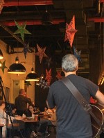 My friend Tom played a set at a Youth Hostel on Long Island City so I braved the journey with several subway changes and was rewarded by a lovely view of Manhattan. Tom is, like Debbie, blind. His day job is Psychotherapist. It is great to ‘see’ the city in a different way, thanks to my blind friends.