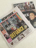 Following our morning walk, we walk to Broadway to collect 2 free newspapers from their respective boxes on the sidewalk: A.M. New York and the Metro. We then go back to have breakfast in Debbie’s kitchen, from where I took this photo.