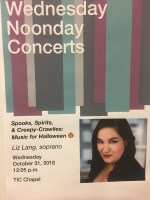 Debbie and I went to Liz Lang’s concert ‘Spooks, Spirits and Creepy Crawlies’ at the Interchurch Center just down the road from us. Liz is Debbie’s able PA and a fantastic singer. There was also an interesting exhibition of African Art that had been lent by a man living in Debbie’s building.