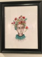The sun was streaming into the Sunroom and Kieren Anavy was putting the finishing touches to her lovely exhibition ‘Garden of Living Images’ where the material will gradually soak up the colours in the baths underneath the hanging scrolls – beautiful!