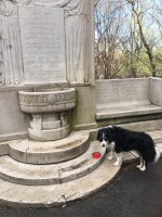 Poor Alfie is still as obsessed as ever. He had a good sniff of the cat’s bum and seemed happy. A few days later he dragged me all the way across Morningside Park to Harlem – just under a mile away – where his vet is in order to stalk the cat that lives in reception. He is absolutely obsessed. In both cases, he took me to both places, remembering the route from a year ago – phenomenal!
