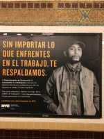 As you walk around New York you come across things worth photographing – as in the sign on the subway, in Spanish, that they do not care whether you do not have the right to work in New York – they will not kick you out (directly opposing the dictates of the orange fool).