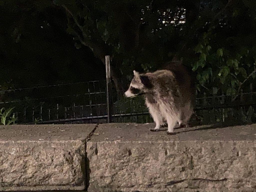 Arriving at Debbie’s at 9.45 p.m. it was good to see Jeanette, the door person, hug Debbie and then walk along the top of Riverside Park with Genia where we saw 3 baby raccoons peaking over the top of the high wall.