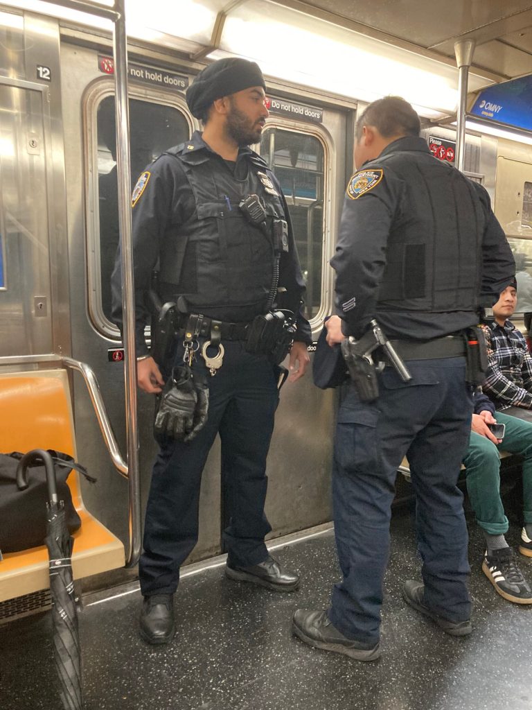 Here, I feel like posting a couple of subway photos – me at 116th waiting for the 1 train and a couple of New York’s finest