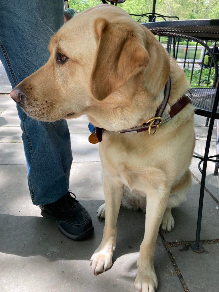 At lunchtime on Monday I finally met Tom and his new Seeing Eye dog Xenia, after 4 years. She is a sweet beige lab and looks very like his previous dog, the adorable Tanner, who passed away last year at 14.
