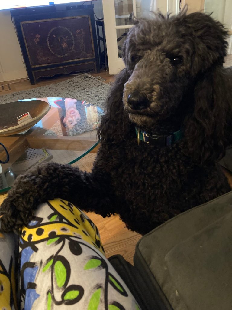 The next day was equally hot and at 3.15 I went to collect Zena who I was dog-sitting until Saturday night. She is an adorable and wise 2 year-old standard poodle whose disposition reminds me of Alfie’s. We had hit it off straight away and I took her everywhere with me. She got on with Ellie-dog after Ellie had shown her who was boss.