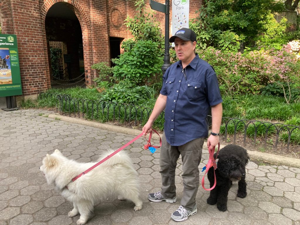 I slept quite badly in Zena’s apartment but as soon as I awoke, I took her to Riverside Park for a walk and a couple of hours later we got on the subway to meet Tom and his seeing eye dog Xaria. The two girls rubbed along well together. I think Zena (like Alfie) would have made a great Assistance dog.