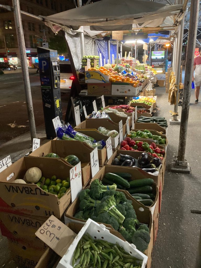 I arrived at Central Park and walked up to 66th and over to the Juilliard to listen to Adam Pham playing the harp (Debussy, Hindemith, Salzedo) – enjoyable as ever. As it was a warm day I walked back to 116th street along Broadway, passing the fruit and vegetable stands, the restaurants, bars and shops and many lovely dogs…