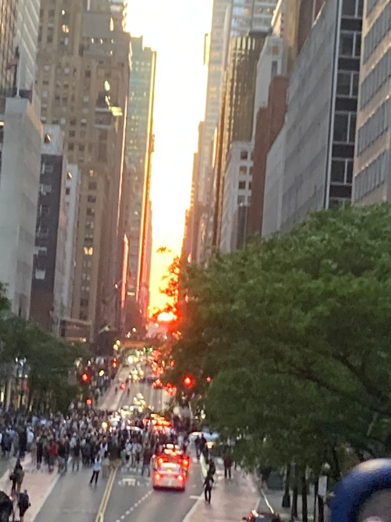 Today and tomorrow is “Manhattanhenge” that occurs on days when the sunset or sunrise lines up with Manhattan’s crosstown street grid (from the Hudson to the East River) between 14th St and 155th St. It is accidental but magical!