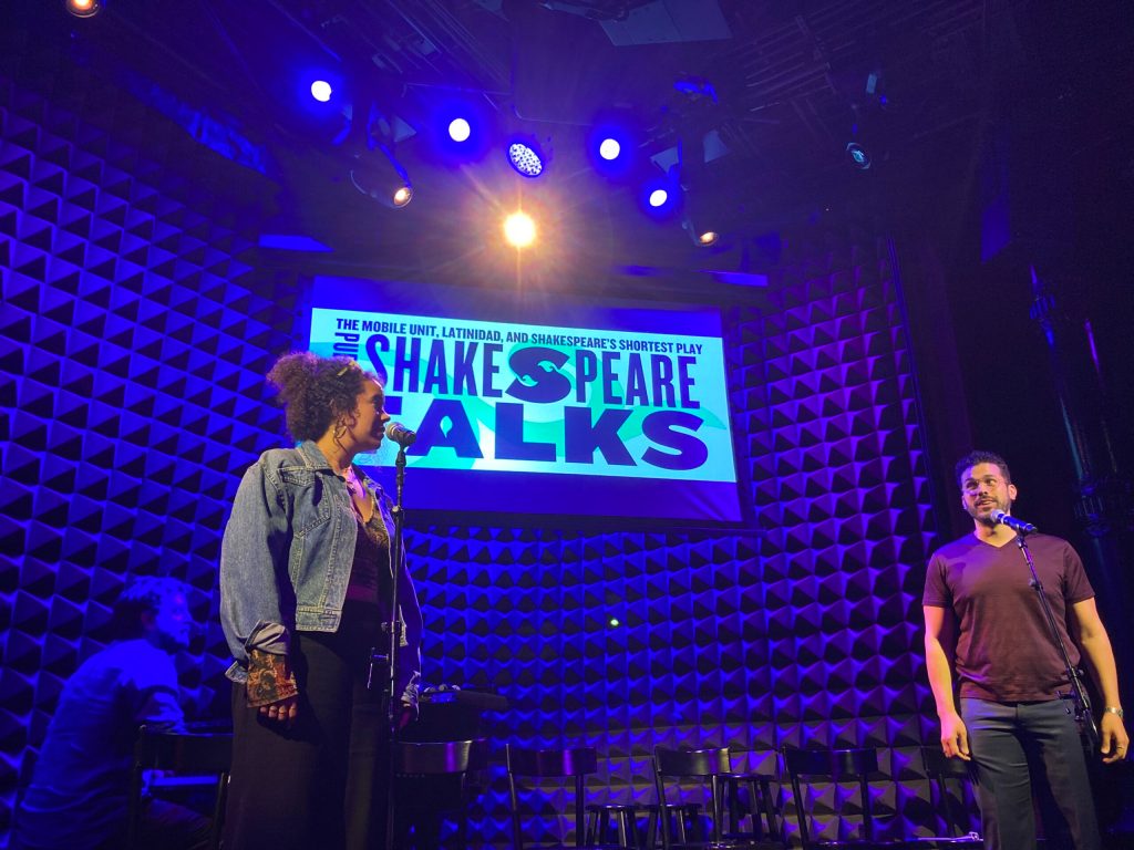 While I was on the patio, shaded by the sun, of “Joe Coffee”, an e mail randomly popped into my inbox inviting me to the Public Theatre this evening for free ($20 tickets) – an opportunity to see Public Alum Raúl Esparza moderating the discussion between director Rebecca Martínez, composer Julián Mesri, and cast members from the bilingual Mobile Unit production of the Comedy of Errors (the first performance of which I attended). I immediately invited Genia to come with me.
