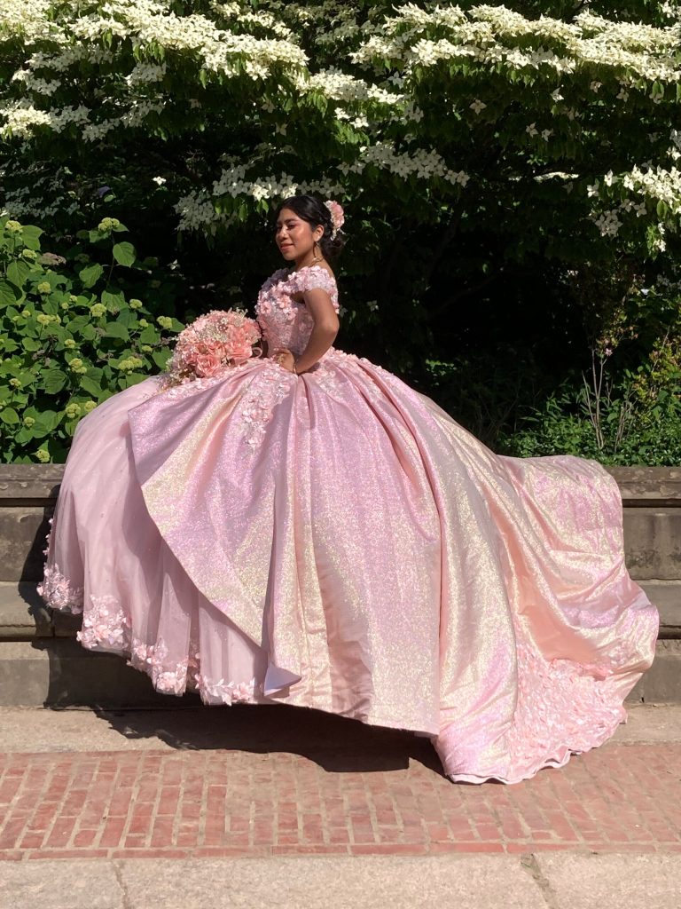 I then went to “Pain Quotidien” at the little boat pond in Central Park to meet Eve and Catherine, both French, for coffee and a wander. We bumped into a young woman wearing a sumptuous (frankly OTT) pink dress to celebrate her 18th birthday…..
