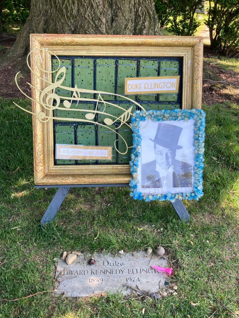 There are 8,000 trees with many of them notable and huge, dwarfing even the largest of the mausoleums. I wandered around for half an hour to find some of the graves of the jazz greats – Duke Ellington and Miles Davis: coincidentally, it was his birthday, hence the flowers in the photograph with “Happy Birthday Chief! We love you and miss you! From Erin, Cheryl and Vince” (his youngest son, daughter and nephew).